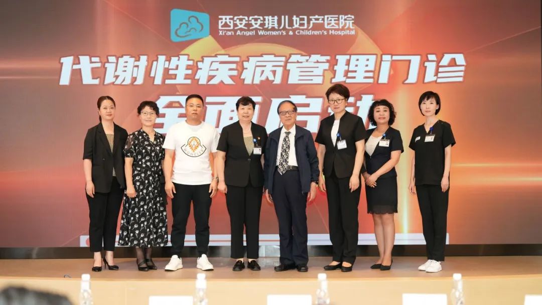 西安安琪兒婦產(chǎn)醫(yī)院院長(zhǎng)王亞琴、總經(jīng)理李慶龍、副院長(zhǎng)韓春玲、新生兒科名譽(yù)專家顧問(wèn)戴英達(dá)教授、營(yíng)養(yǎng)科主任呂陽(yáng)梅、門診部主任黨艷娜、管家部經(jīng)理孟英波、運(yùn)動(dòng)管理專家史元元上臺(tái),共同按下啟動(dòng)鍵,正式開(kāi)啟了西安安琪兒醫(yī)院代謝性疾病診療高質(zhì)量發(fā)展新征程。
