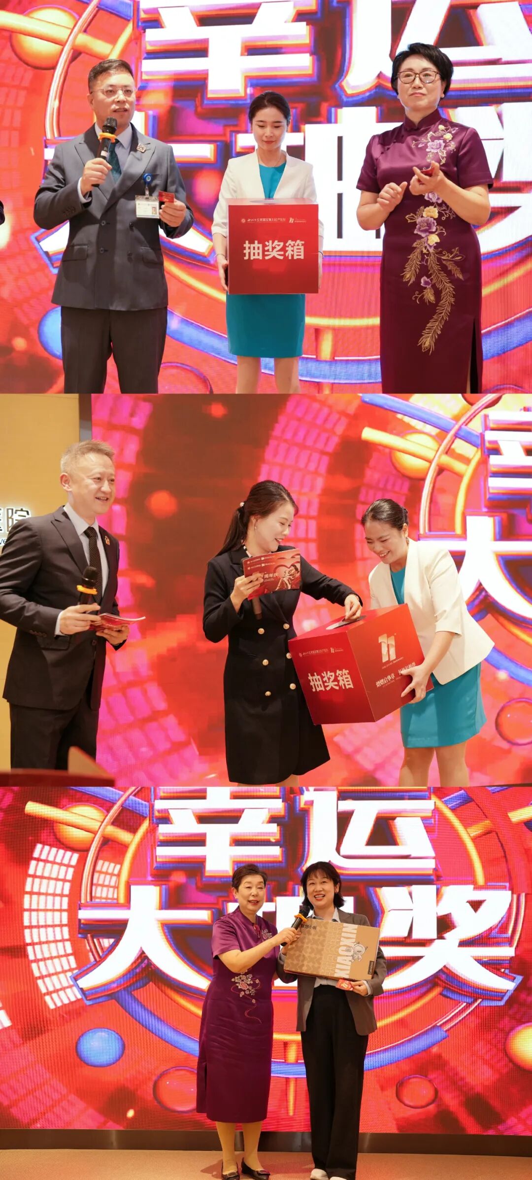 三輪“員工幸運大抽獎” 穿插全程,禮品豐厚,懸念迭起,在主持人的巧妙帶動與領(lǐng)導(dǎo)的親自抽取下,現(xiàn)場驚呼與歡笑不斷,洋溢著濃濃的喜悅與期待。