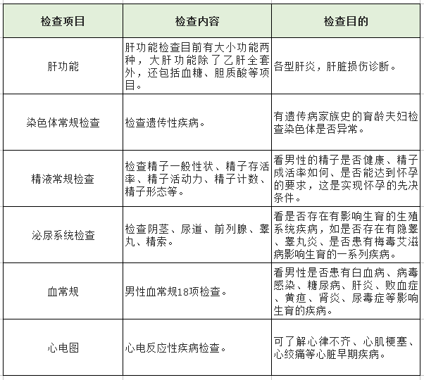 男性孕前項目檢查