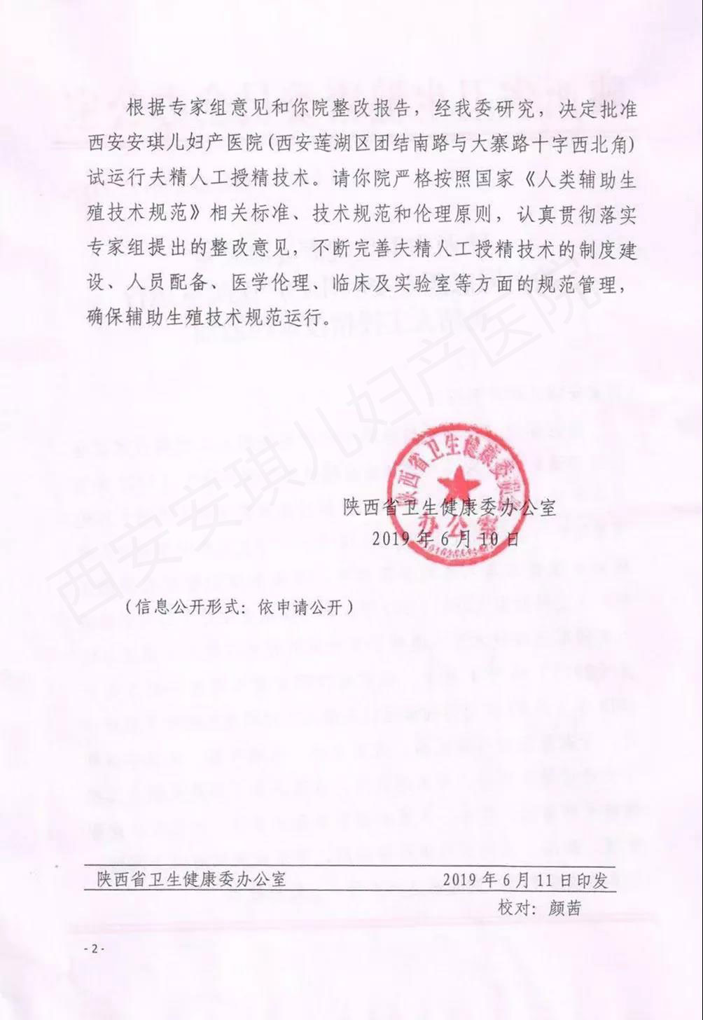 2019年6月,西安安琪兒婦產(chǎn)醫(yī)院生殖醫(yī)學(xué)中心正式獲批開(kāi)展“夫精人工授精(AIH)技術(shù)”資質(zhì)。