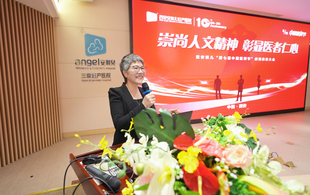 院長王亞琴在致辭中,向全院醫(yī)療工作者致以節(jié)日的問候和衷心的感謝。她表示,“中國醫(yī)師節(jié)”的設(shè)立,充分體現(xiàn)了黨和國家對(duì)衛(wèi)生與健康工作的高度重視,以及對(duì)衛(wèi)生與健康工作者的關(guān)懷和肯定。一代又一代的婦產(chǎn)科前輩在奉獻(xiàn)和擔(dān)當(dāng)中鋪就了新時(shí)代婦產(chǎn)發(fā)展之路,這不僅是指引,更是動(dòng)力。在醫(yī)院建設(shè)發(fā)展的過程中,醫(yī)師隊(duì)伍是一支核心力量,在醫(yī)療服務(wù)、學(xué)科建設(shè)、技術(shù)創(chuàng)新等方面起著關(guān)鍵作用。正是有了這樣一支技術(shù)精湛、服務(wù)優(yōu)質(zhì)的醫(yī)師隊(duì)伍,西安安琪兒婦產(chǎn)醫(yī)院才能在保障母嬰健康、推動(dòng)醫(yī)療技術(shù)進(jìn)步方面取得顯著成績。