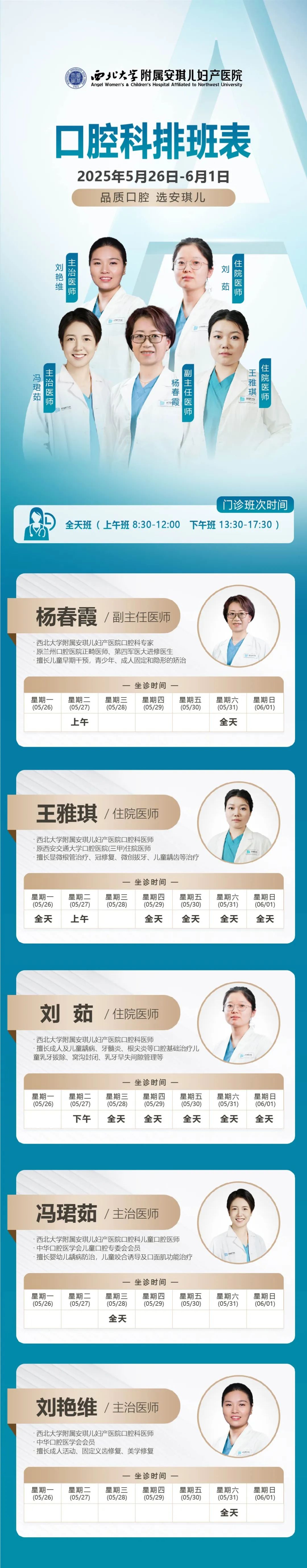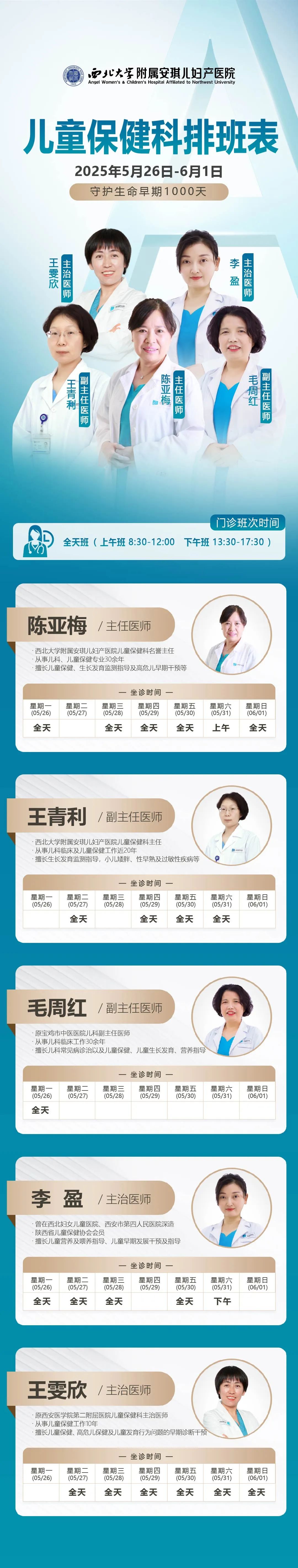 西安安琪兒婦產(chǎn)醫(yī)院(8月25日至8月31日)專家坐診時間表