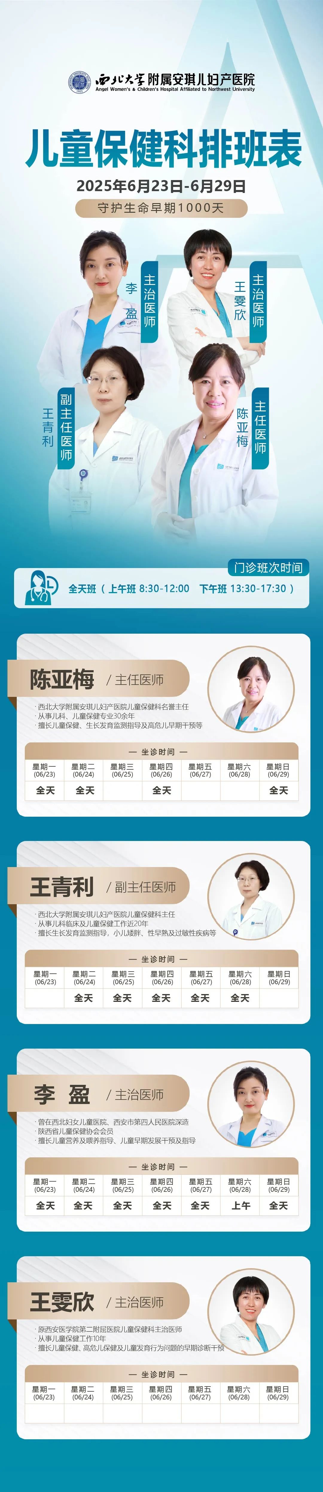 西安安琪兒婦產(chǎn)醫(yī)院(8月18日至8月24日)專家坐診時間表