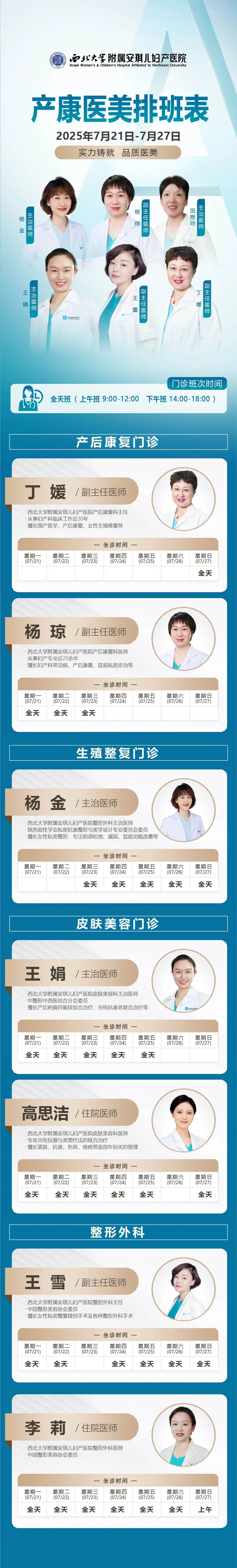西安安琪兒婦產(chǎn)醫(yī)院(8月11日至8月17日)專家坐診時間表