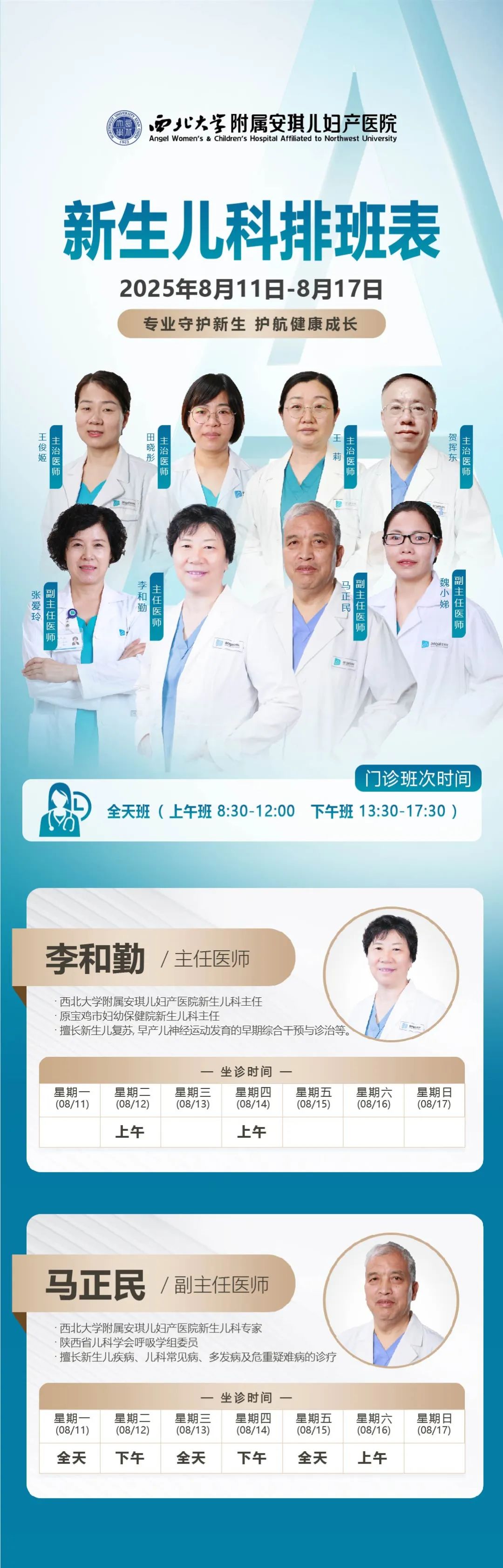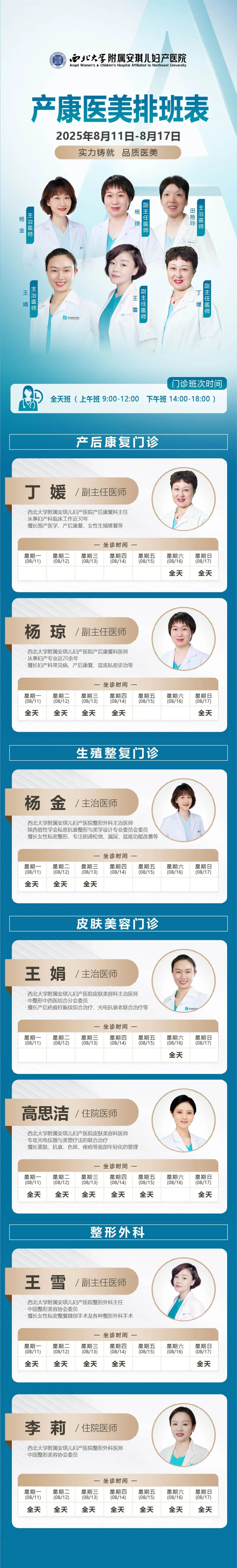 西安安琪兒婦產醫(yī)院(8月11日至8月17日)專家坐診時間表
