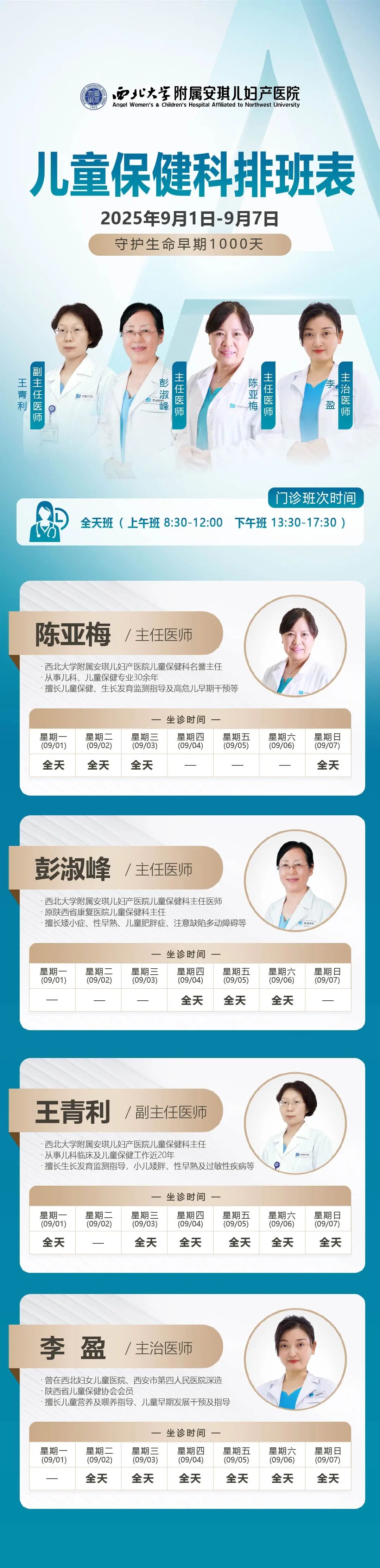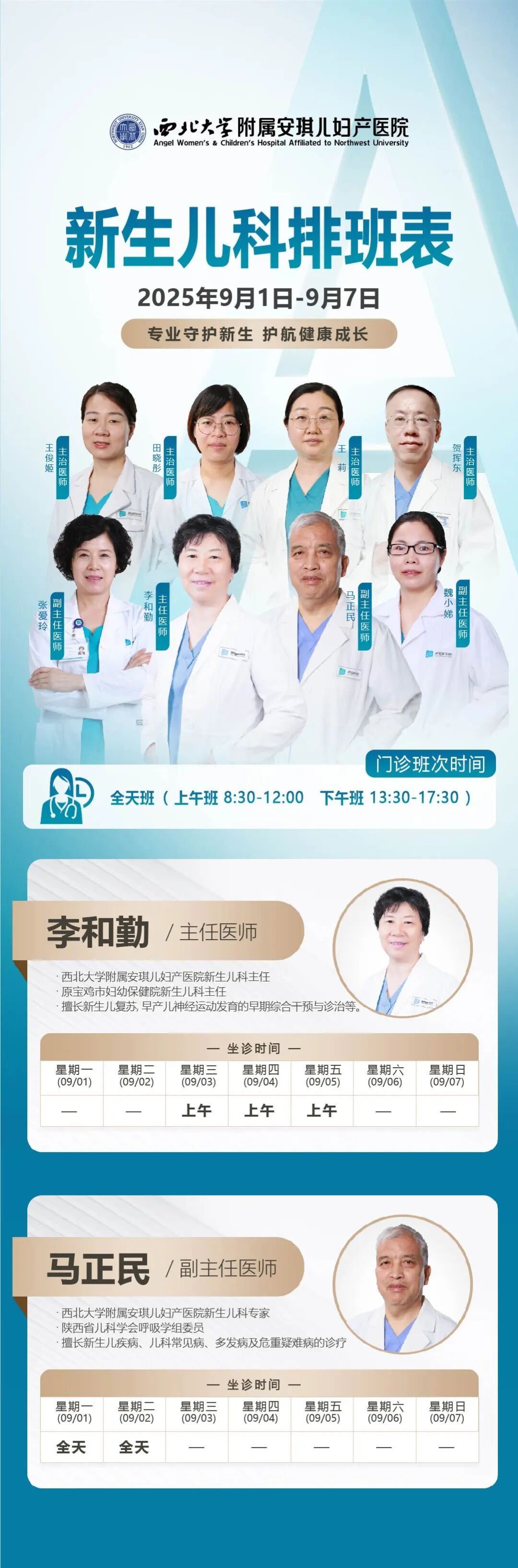 西安安琪兒婦產(chǎn)醫(yī)院(9月1日至9月7日)專家坐診時(shí)間表