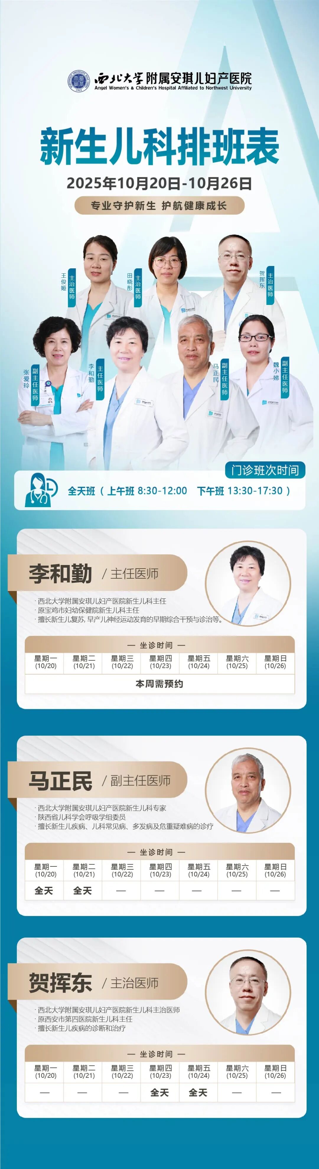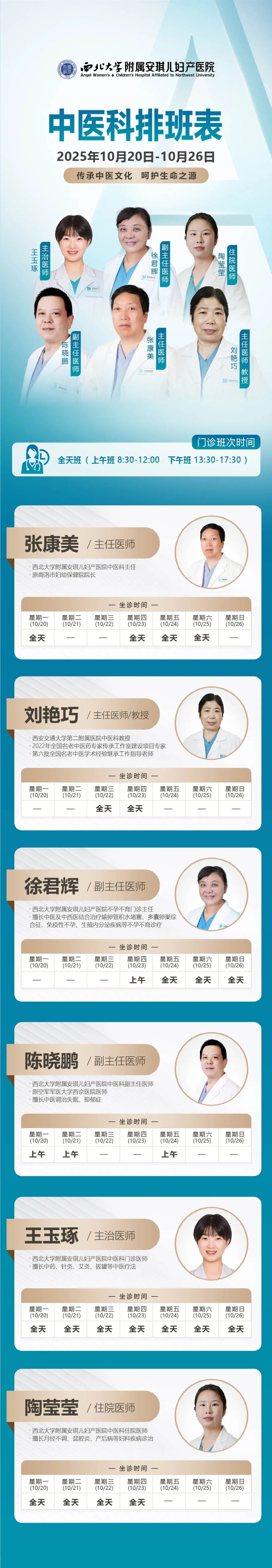 西安安琪兒婦產(chǎn)醫(yī)院(10月20日至10月26日)專家坐診時(shí)間表