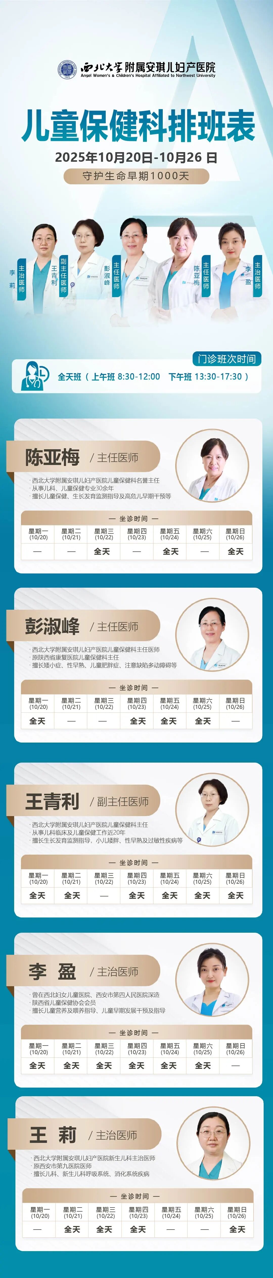 西安安琪兒婦產(chǎn)醫(yī)院(10月27日至11月2日)專家坐診時(shí)間表